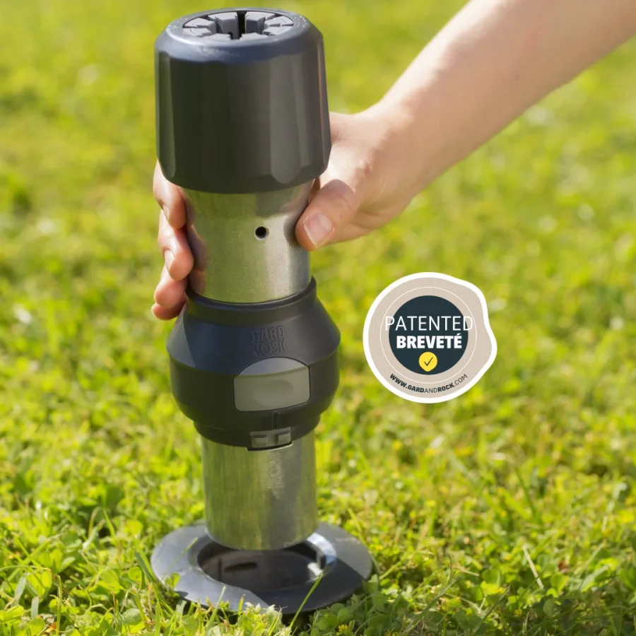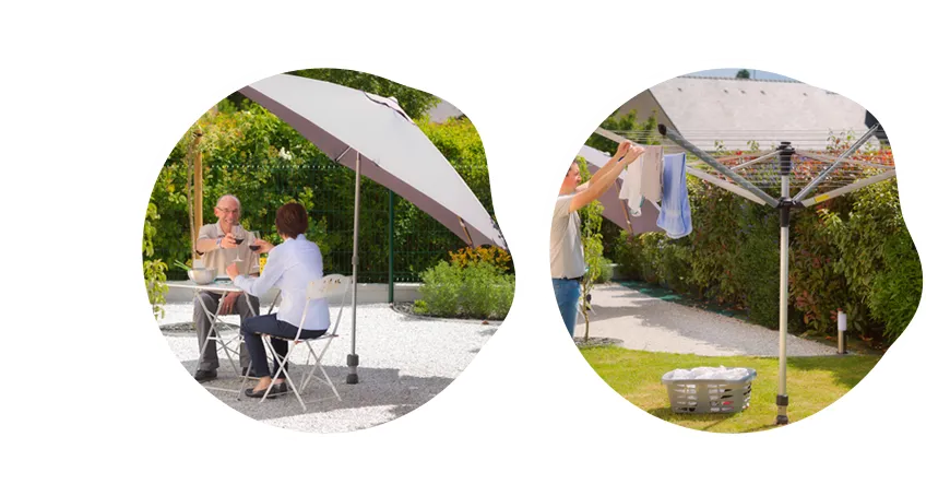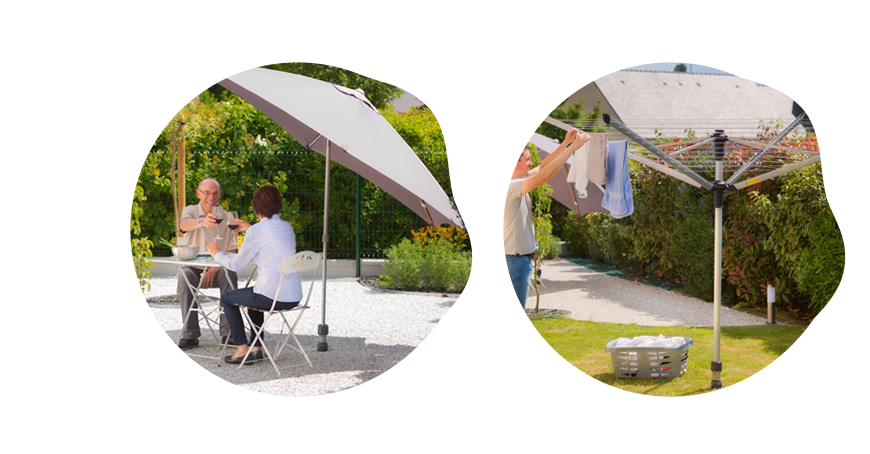 In the case of small outdoor spaces, in particular those of town houses, you will be able to switch your equipment with one sole anchoring base and, for example, install a clothes dryer in the morning, a parasol in the afternoon, and a Gard&Rock solar spotlight in the evening. In other words, you will be able to take advantage of a multitude of activities even in a small space.
