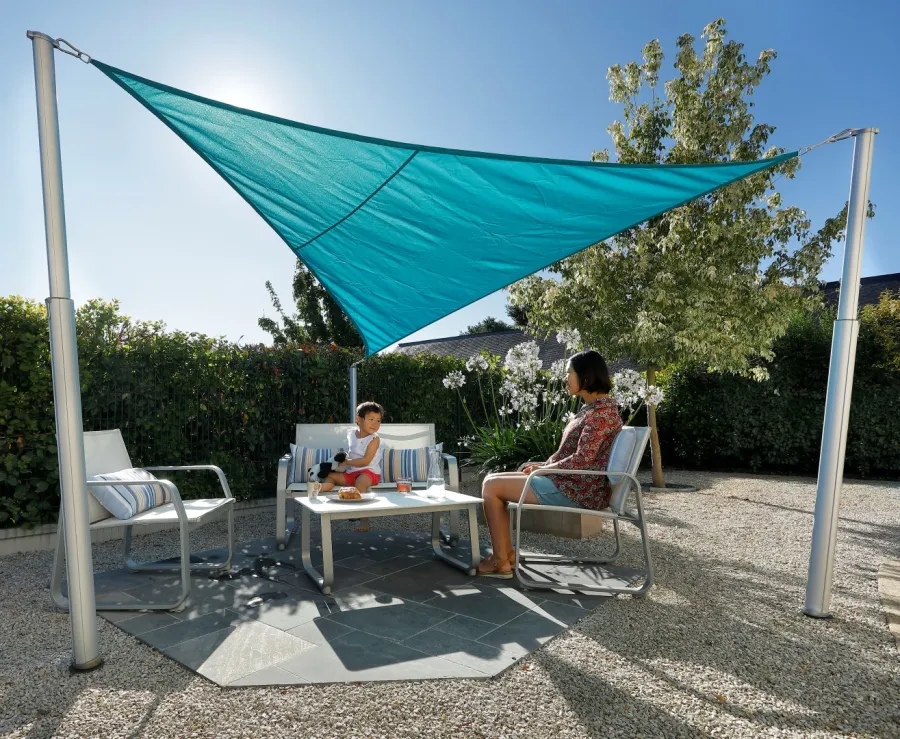 Currently, we offer shade products, such as a stand for a straight or an offset parasol and a telescopic post for shade sails that allow you to create shade in the garden wherever you want.