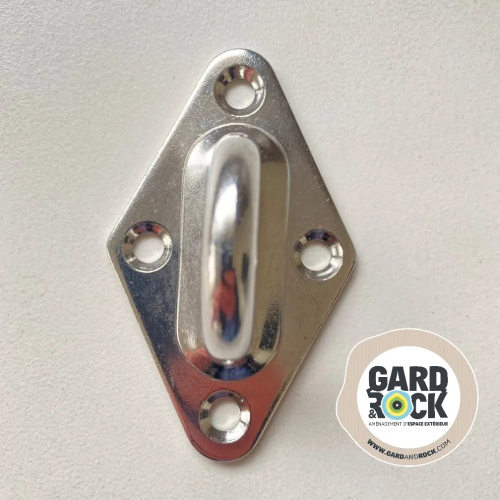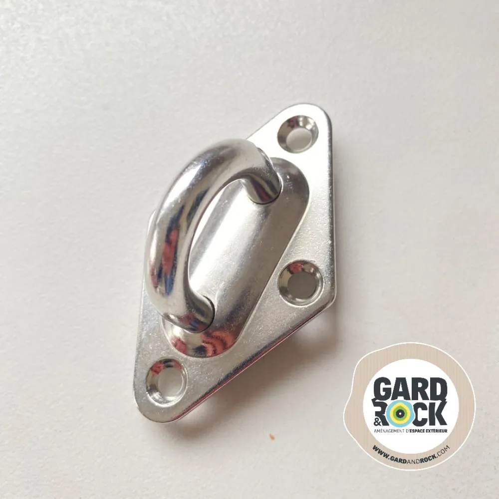 This stainless steel plate with an eyelet will allow you to fix your shade sails to a wall, a house front, a veranda or a pergola.