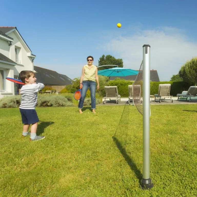 At home, with friends, or on holiday, you can quickly turn your space into a proper Tennis, Badminton, Pickleball or Volleyball court by simply clipping onto the ground.