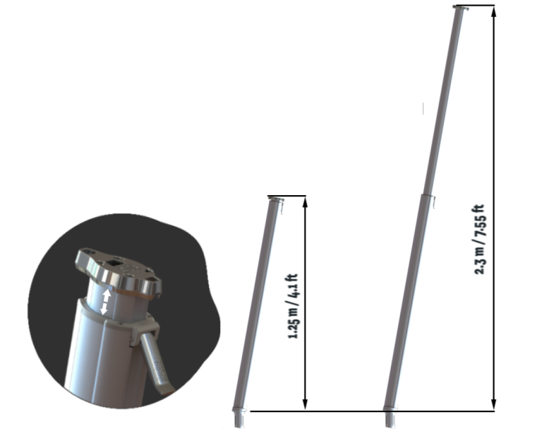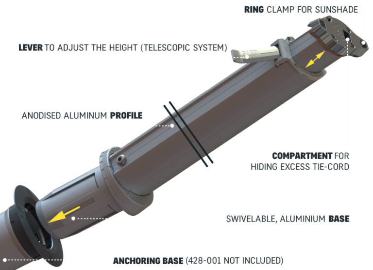 ☛ CHOOSING YOUR SAIL: To make it easier to mount and protect the poles, we recommend that you use a perforated sail (micro-ventilated, wind-permeable) with a surface area of 12 m² and a maximum density of 300 g/m². This will allow you to stretch out your sails to your liking and enjoy quality shading.