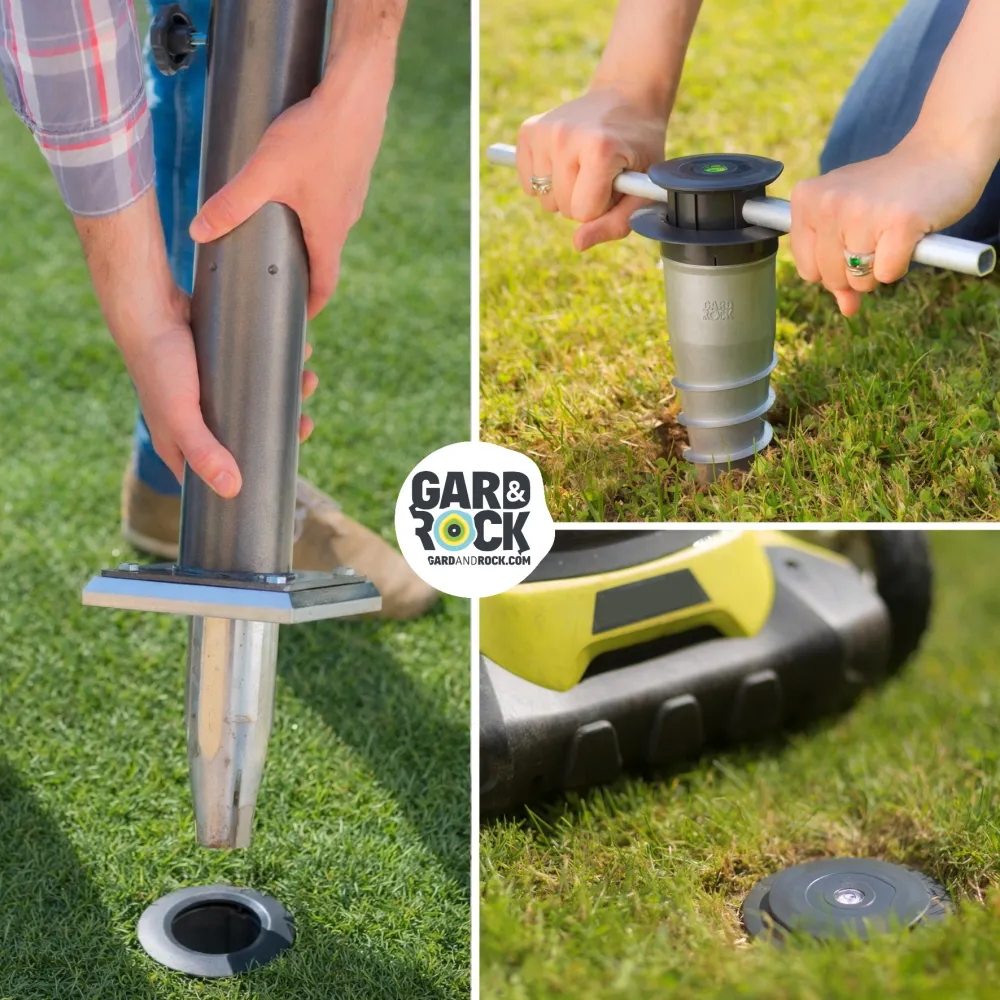 This handy system allows you to install your outdoor space in a flash. Combined with the products from the Gard&Rock evolutive range, it will be possible for you to install, move and store your outdoor equipment in a flash (parasols, gazebos, shade sails, hammocks, clothes dryers, bird boxes, sports equipment, etc.). Stylish and discreet, the mounting base will blend seamlessly into the landscape.