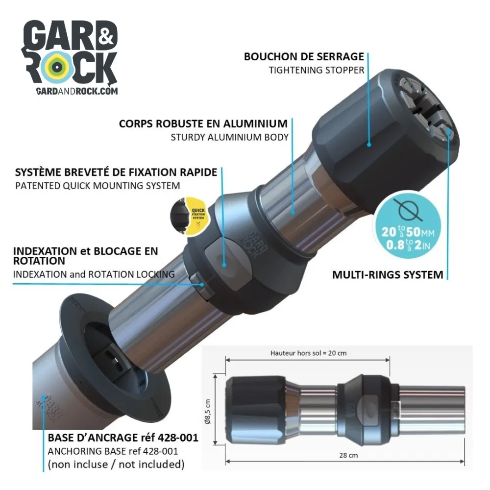 TO CLIP INTO THE INCLUDED STAND OR INTO GARD&ROCK ANCHORING BASES