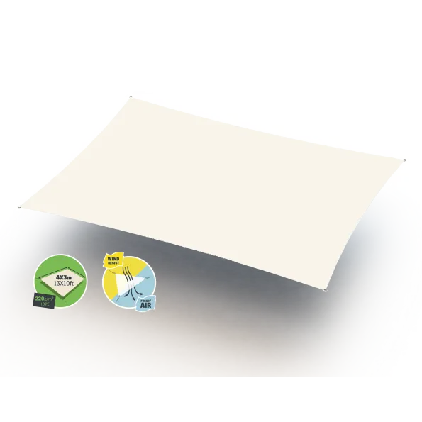 Choose an effective and stylish shading solution. Thanks to Gard&Rock's rectangular shade sails 4*3m (13*10 Ft), you can protect yourself from the sun while adding a decorative touch to your garden. Used with poles, you can create shaded areas anywhere in your outdoor space. Made from micro-perforated 220g/m2 HDPE, you will enjoy a high-quality product that comes in the colour of ivory.