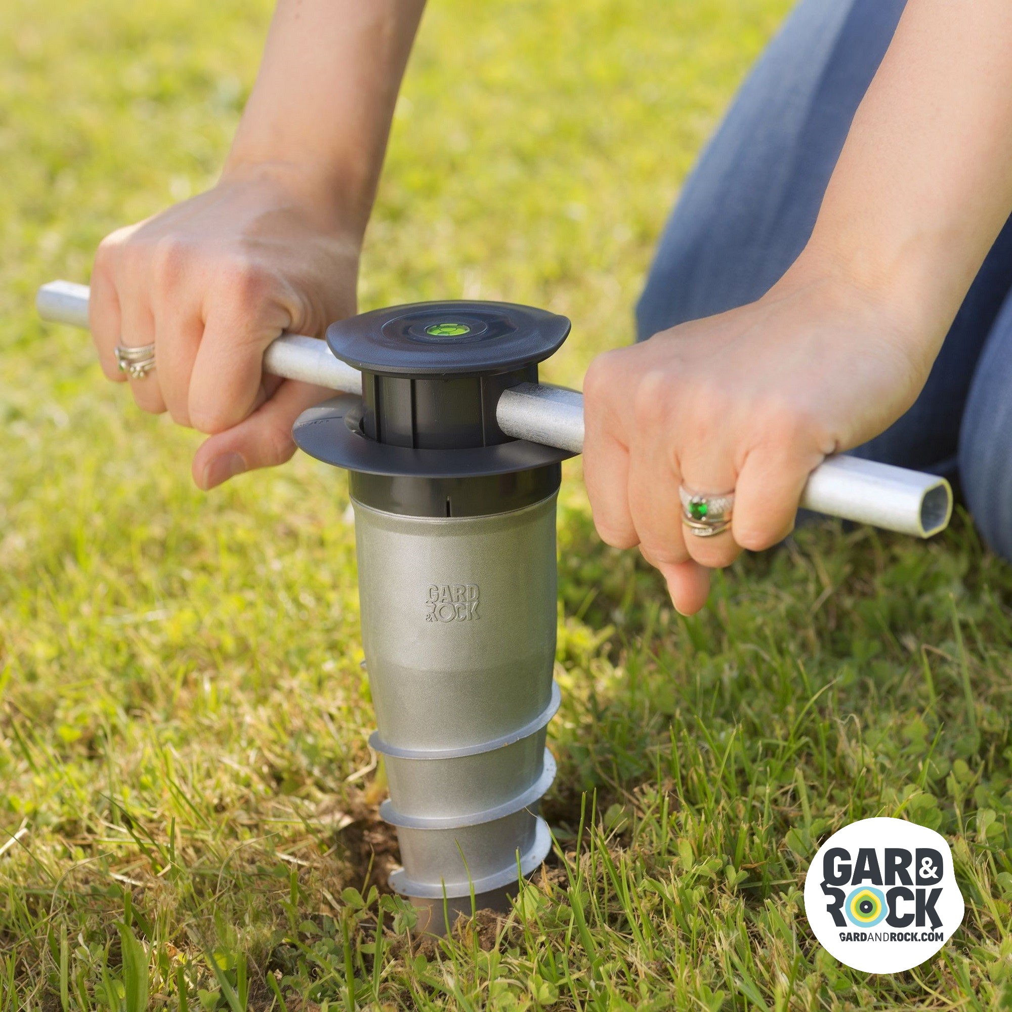 This handy system allows you to install your outdoor space in a flash. Combined with the products from the Gard&Rock evolutive range, it will be possible for you to install, move and store your outdoor equipment in a flash (parasols, gazebos, shade sails, hammocks, clothes dryers, bird boxes, sports equipment, etc.). Stylish and discreet, the mounting base will blend seamlessly into the landscape.