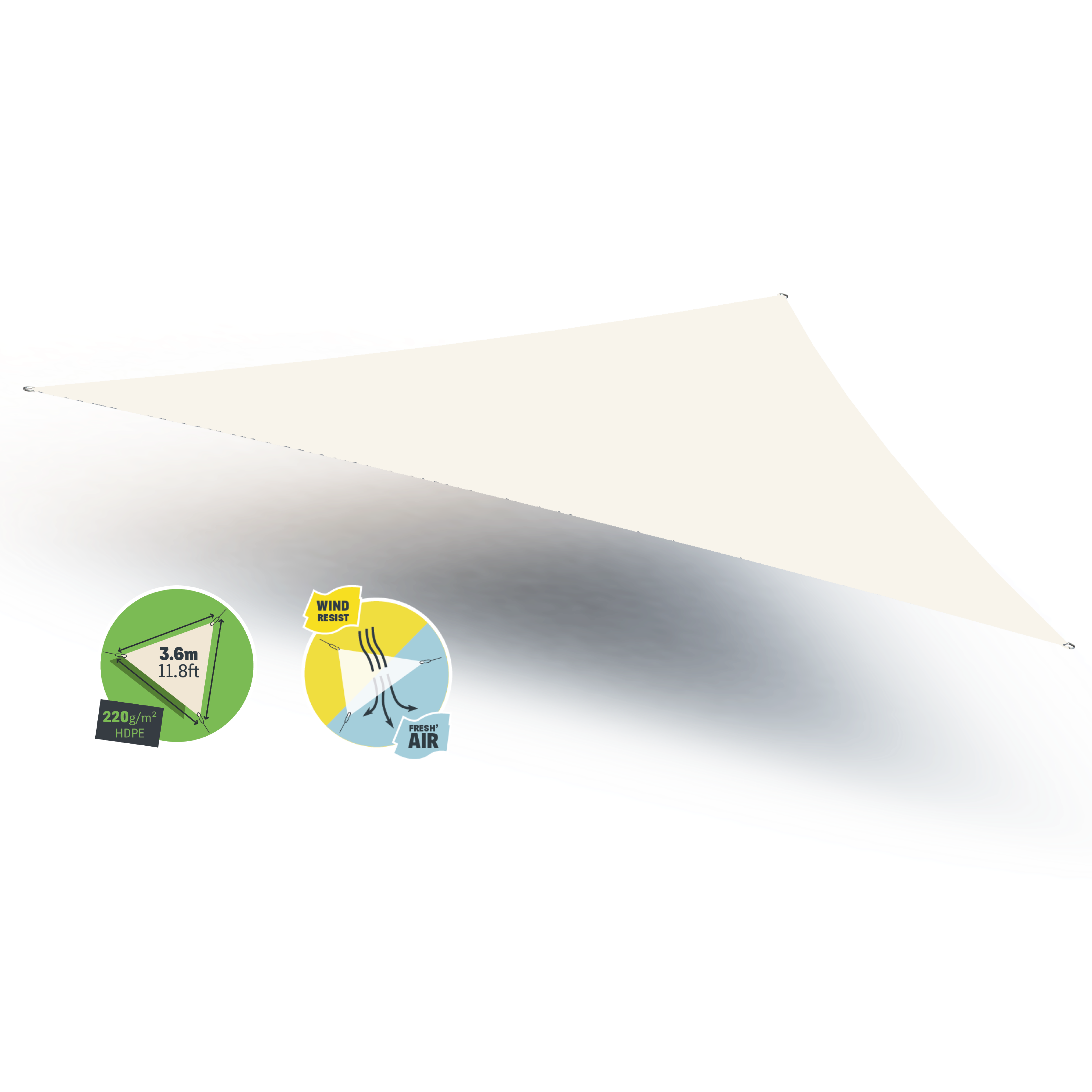 Choose an effective and stylish shading solution. Thanks to Gard&Rock's triangular shade sails, 3.6*3.6*3.6m (12*12*12 Ft), you can protect yourself from the sun while adding a decorative touch to your garden. Used with poles, you can create shaded areas anywhere in your outdoor space. Made from micro-perforated 220g/m2 HDPE, you will enjoy a high-quality product that comes in the colour of ivory.