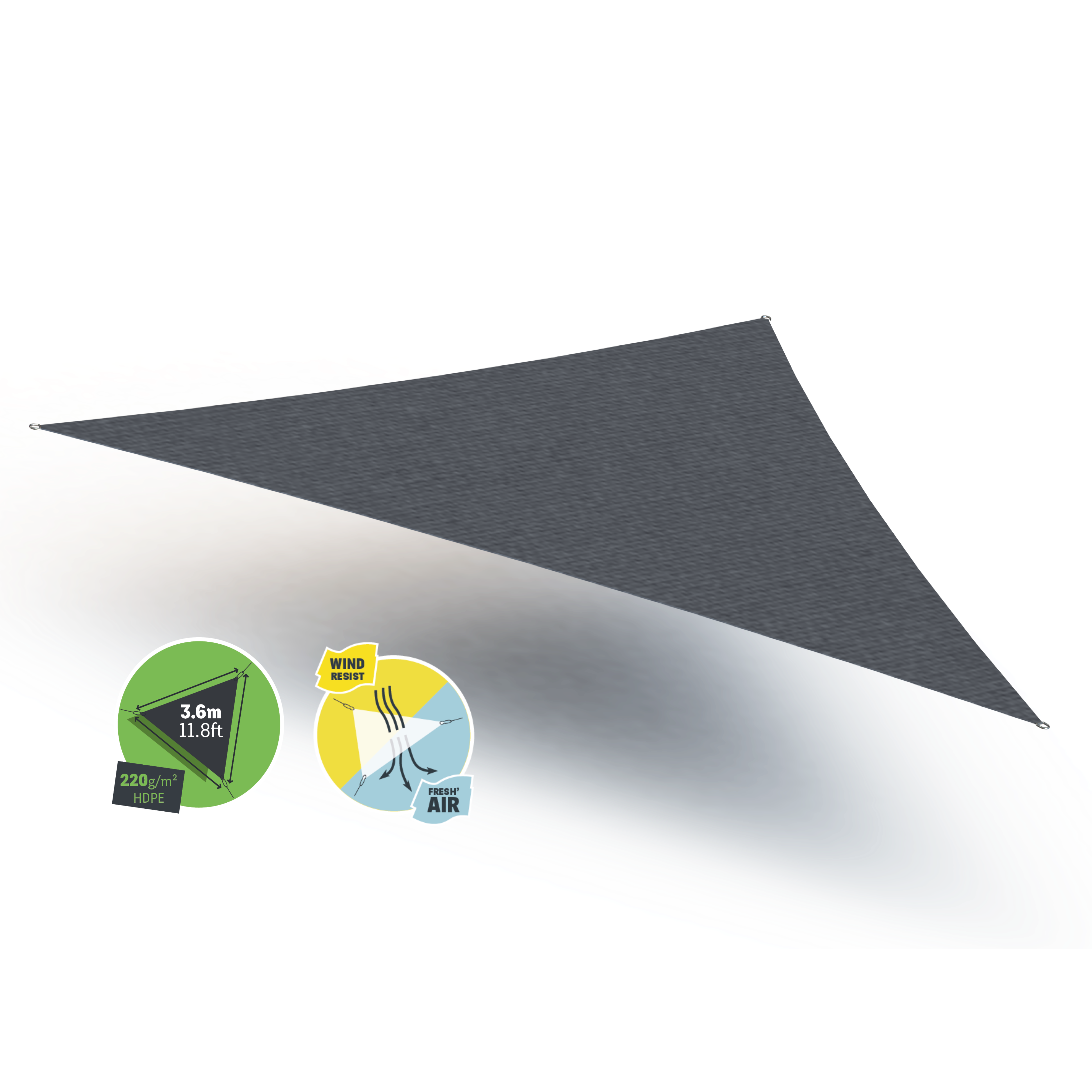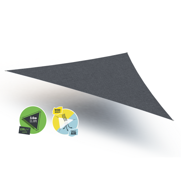 Choose an effective and stylish shading solution. Thanks to Gard&Rock's triangular shade sails, 3.6*3.6*3.6m (12*12*12 Ft), you can protect yourself from the sun while adding a decorative touch to your garden. Used with poles, you can create shaded areas anywhere in your outdoor space. Made from micro-perforated 220g/m2 HDPE, you will enjoy a high-quality product that comes in the colour of graphite.