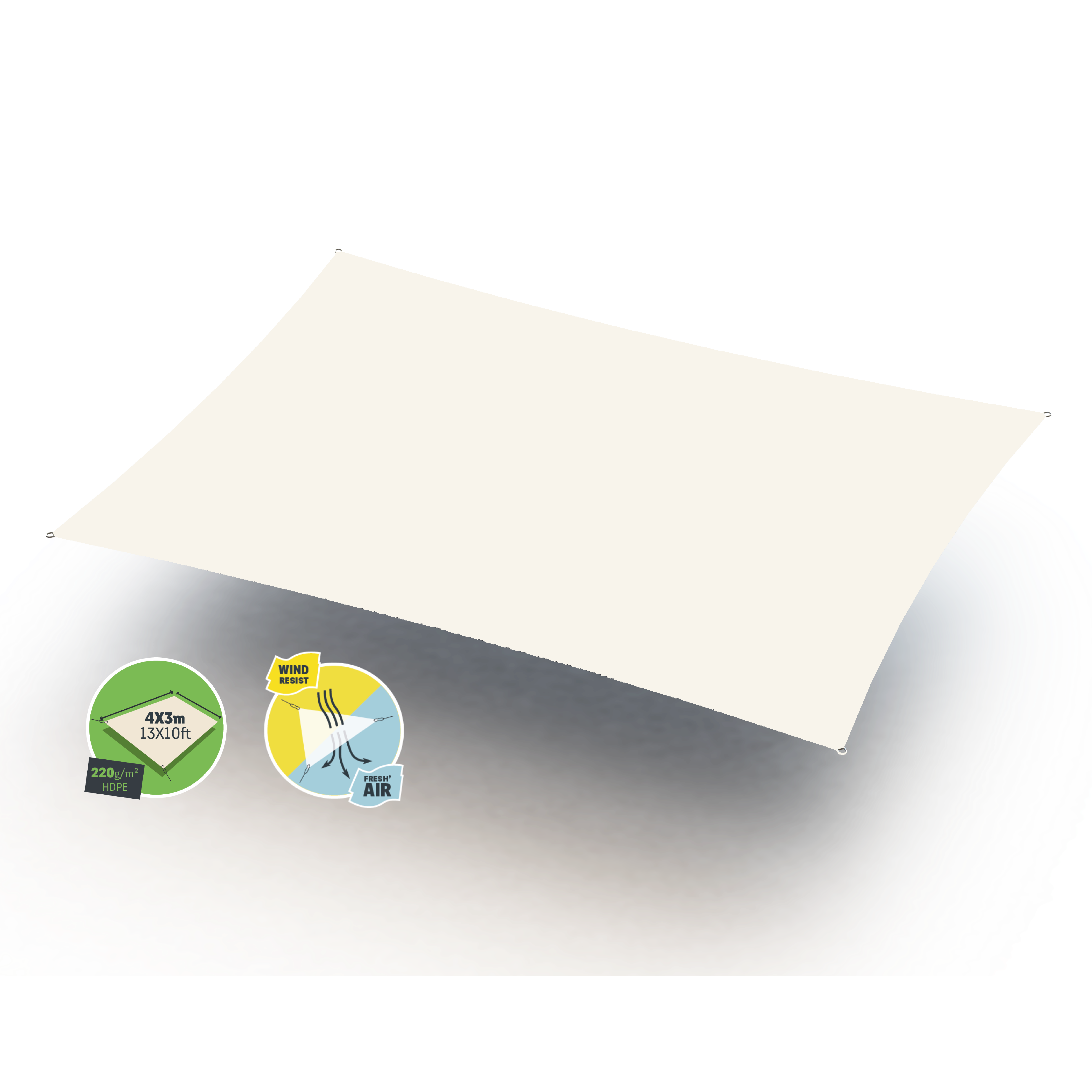 Choose an effective and stylish shading solution. Thanks to Gard&Rock's rectangular shade sails 4*3m (13*10 Ft), you can protect yourself from the sun while adding a decorative touch to your garden. Used with poles, you can create shaded areas anywhere in your outdoor space. Made from micro-perforated 220g/m2 HDPE, you will enjoy a high-quality product that comes in the colour of ivory.