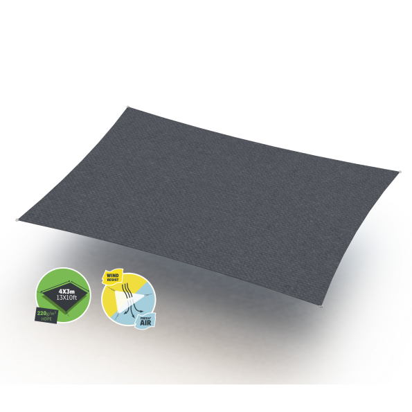 Choose an effective and stylish shading solution. Thanks to Gard&Rock's rectangular shade sails, 4*3m (13*10 Ft), you can protect yourself from the sun while adding a decorative touch to your garden. Used with poles, you can create shaded areas anywhere in your outdoor space. Made from micro-perforated 220g/m2 HDPE, you will enjoy a high-quality product that comes in the colour of graphite.