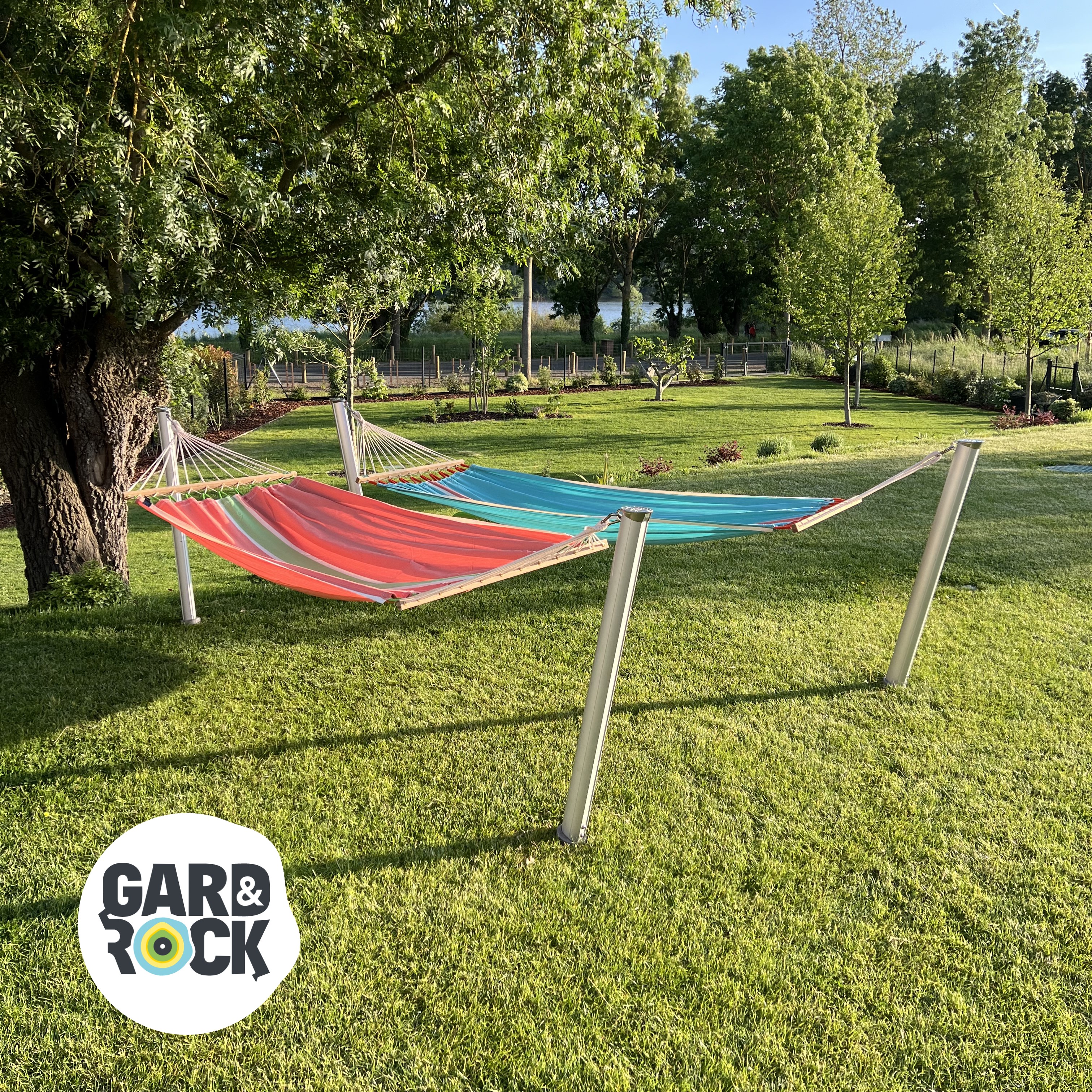 GARD&ROCK posts enable you to quickly and easily fix your hammock anywhere in your outdoor space (terrace, lawn, next to a swimming pool… ). Our patented system offers you removable anchoring enabling you to change the layout of your outdoor space or to clear it in an instant. Whether used with a tree or not, you maximise your chances of finding the ideal place to relax in complete tranquillity. Stylish and robust, this high-quality product was designed in France. An indispensable accessory for spending pleasant moments in your garden.