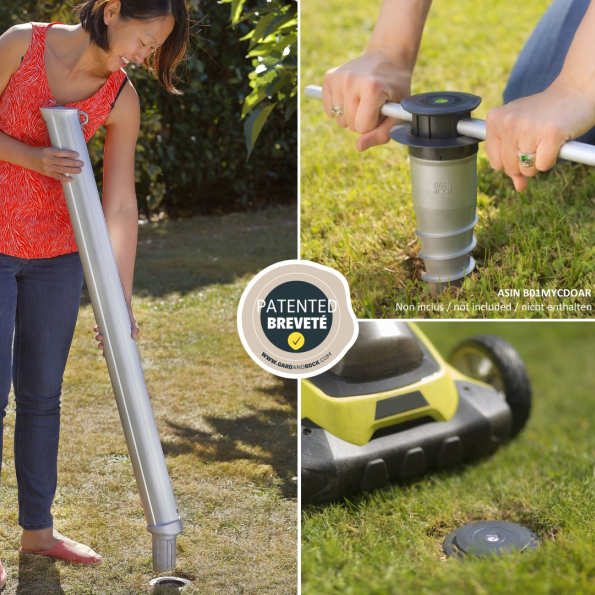 This handy system allows you to install your outdoor space in a flash. Combined with the products from the Gard&Rock evolutive range, it will be possible for you to install, move and store your outdoor equipment in a flash (parasols, gazebos, shade sails, hammocks, clothes dryers, bird boxes, sports equipment, etc.). Stylish and discreet, the mounting base will blend seamlessly into the landscape.